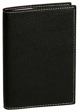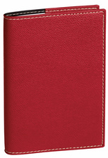 • Couverture: CLUB en matière plastique au grain 2 tons, finition surpiqûre sellier colorée, amovible, avec rabats pour y glisser des papiers