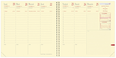 • Calendrier: 1 semaine sur 2 pages