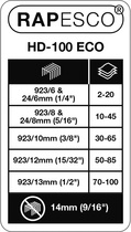 RAPESCO Agrafeuse grande capacité ECO HD-100, noir – capacité d’agrafage: 100 feuilles, profondeur de gorge: 55 mm, agrafes: 923/6-13, 24/8 ou 24/6 mm, agrafeuse à demi- bande, mécanisme de recharge par le haut, boîtier en métal avec capot protecteur ABS, en matériau recyclé, (1276) poignée caoutchoutée, système de blocage du papier avec protection antibactérienne