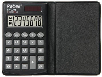 Rebell Calculatrice de poche SHC 208, noir – affichage LC à 8 chiffres, fonctionne avec pile/solaire, opérations arithmétiques de base, inversion de signe, calcul de pourcentage, fonction mémorisation, housse de protection dimensions : (L)62 x (P)100 x (H)8 mm, poids : 37 g (RE-SHC208)