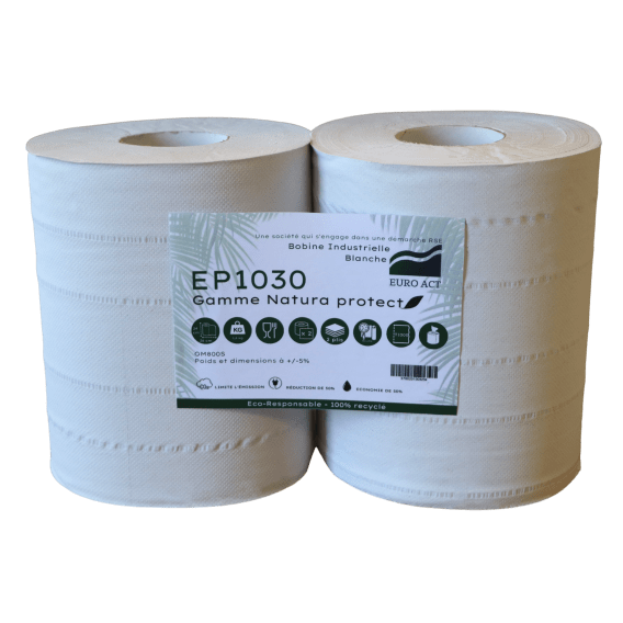 Bobines blanches ouate recyclée chamois “Natura Protect” Bobines de 4,8 kg 2 plis 26 x 30 cm Bobines lisses