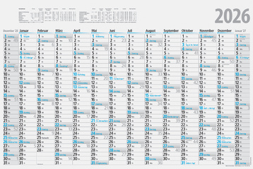 rido idé Wandkalender Plakatkalender, 700 x 470 mm, gefalzt – 2026, 150 g/qm, 1 Seite = 14 Monate, Druck: schwarz/blau, gefalzt auf 235 x 350 mm, Kalendarium: Dezember Vorjahr bis Januar Folgejahr (7033601056) Jahreskalender