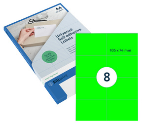 rillprint Étiquette fluorescente, 210 x 297 mm, vert – autoadhésif, pour imprimantes à jet d’encre, laser et laser couleurs, adhérence permanente contenu: 100 étiquettes sur 100 feuilles A4 (B84024)