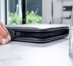 rillstab Conférencier “Excellent de luxe”, A5, noir – similicuir, fermeture zip tout autour, compartiments pour documents A5, compartiment à fermeture zip, 1 passant pour stylo, bloc-note A5 de 25 feuilles lignées, dimensions fermé: (L)200 x (H)250 mm, (98994)