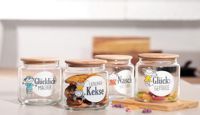 Ritzenhoff & Breker Vorratsglas LIEBLINGSKEKSE, 1,1 Liter – Keksdose aus Glas mit Aufschrift “Lieblingskekse” mit Buchenholzdeckel und Silikondichtungsring Durchmesser: 115 mm, Höhe: 145 mm (816501)