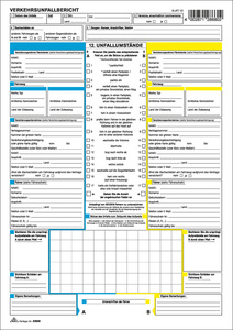 • Für den Markt: D Hinweis: Wer mit seinem Kfz in einen Verkehrsunfall verwickelt wird, sollte unbedingt an Ort und Stelle mit dem Unfallgegner einen Unfallbericht schreiben. Die deutsche Version ist mit den anderssprachigen Versionen identisch, so dass die Inhalte mit einer nicht deutschsprachigen Version ausgetauscht werden können.