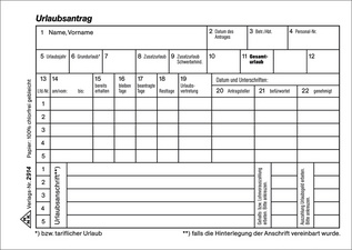 RNK Verlag Vordruck “Urlaubs- und Freistellungsantrag” – —————— Für den Markt: D ———————— Block, DIN A6 quer, 50 Blatt, Vorderseite: Antrag auf Er- holungs- oder Zusatzurlaub, Rückseite: Antrag auf Frei- stellung für Sonderurlaub (2914)