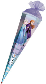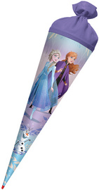 ROTH Motiv-Schultüte “Disney Frozen”, rund, 700 mm, Glitter – Lizenz-Schultüte, Filzverschluss und Glitter, mit stabiler ROTH-Spitze (677495)