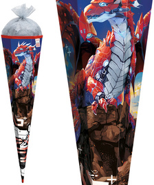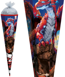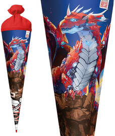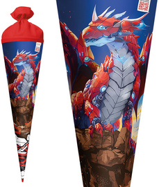 ROTH Motiv-Schultüte “Robo Drache”, eckig, 850 mm, Folie – mit Tüllverschluss, Folie und Silbertüll, mit stabiler ROTH-Spitze (678907)