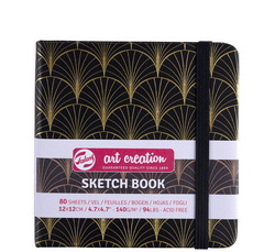 ROYAL TALENS Art Creation Carnet de croquis Art Deco – 210 x 297 mm, 160 pages, 140 g/m2, papier sans acide, à grain fin, coins arrondis, couverture rigide avec motif imprimé, avec un élastique, avec ruban marque-page (9314153M)
