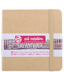 ROYAL TALENS Art Creation Carnet de croquis, naturel – 130 x 210 mm, 80 feuilles, 140 g/cm2, papier sans acide, grain fin, coins arrondis, couverture en papier kraft, avec élastique de fermeture et ruban marque-page (9314432M)