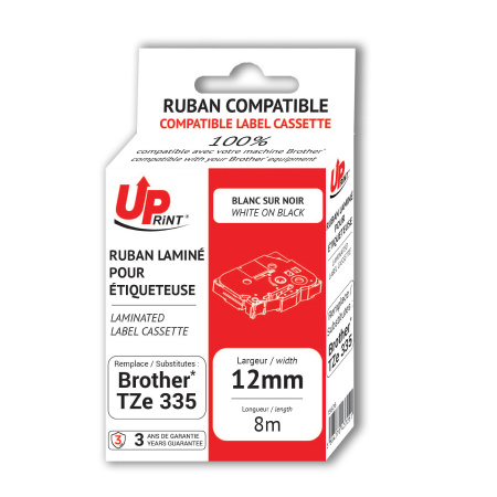 Disponibilité: En stockRUBAN POUR ETIQUETEUSE COMPATIBLE AVEC BROTHER TZe 335 BLANC SUR NOIR