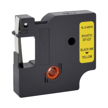 Disponibilité: En stockRUBAN POUR ETIQUETEUSE COMPATIBLE DYMO 40918 NOIR SUR JAUNE 9mm x 7M