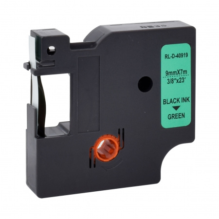 RUBAN POUR ETIQUETEUSE COMPATIBLE DYMO 40919 NOIR SUR VERT 9mm x 7M