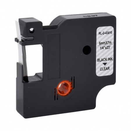 Disponibilité: En stockRUBAN POUR ETIQUETEUSE COMPATIBLE DYMO 43610 NOIR SUR TRANSPARENT 6mm x 7M