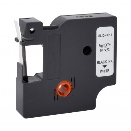 RUBAN POUR ETIQUETEUSE COMPATIBLE DYMO 43613 NOIR SUR BLANC 6mm x 7M