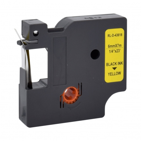 Disponibilité: En stockRUBAN POUR ETIQUETEUSE COMPATIBLE DYMO 43618 NOIR SUR JAUNE 6mm x 7M