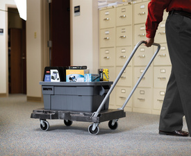 Rubbermaid Chariot de transport Triple, gris – capacité: jusqu’à 181,4 kg, matériau: polyéthylène, maniabilité optimale grâce à la poignée 3 positions, 2 roues fixes + 2 roues pivotantes, dimensions: (L)826 x (l)521 mm (FG440100)