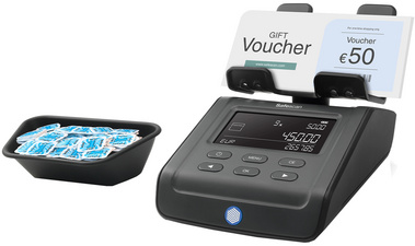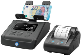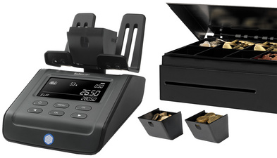– compte les pièces de monnaie & billets de banque, rouleaux de pièces, liasses de billets
