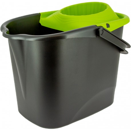 Seau rectangulaire d’une capacité de 14 L avec essoreur et bec verseur.