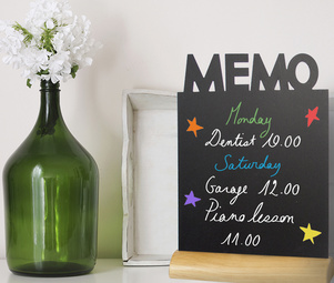Ardoise de table SILHOUETTE “Memo” base amovible en bois avec porte