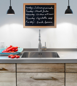 Securit Ardoise murale WOODY, avec cadre en bois, noir – double face inscriptible avec feutres-craies, à nettoyer avec un chiffon humide, résistant aux intempéries, en bois de pin parasol et mélamine, incl