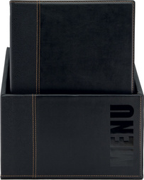 Securit Protège-menus TRENDY, A4, boîte de 20, noir – protège en plastique, simili cuir, gaufrage: MENU, incl