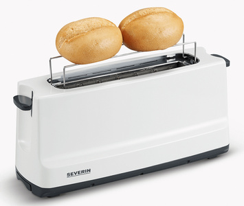 SEVERIN Grille-pain 2 tranches AT 2232, blanc / noir – puissance: 800 watts, support intégré pour faire griller les petits pains, niveau dégivrage, réchauffage, bouton déclencheur, disposant chacun d’un témoin lumineux, centrage des tranches de pain, (AT 2232) fiche de courant avec terre – pour CH aptateur