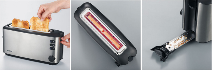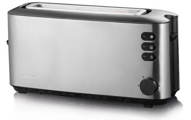 SEVERIN Grille-pain à fente longue AT 2515, inox / noir – accessoire pour griller les petits pains intégré, boîtier à double paroi, puissance: 1