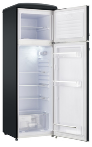 SEVERIN Réfrigérateur-congélateur rétro RKG 8984, noir mat – classe d’efficacité énergétique D, consommation: 151 kWh/an, avec éclairage LED, poignées rétro et parties chromées, capacité utile: 246 L, dim