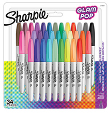 Sharpie Marqueur permanent FINE “Glam Pop”, blister de 5 – tracé: 0,9 mm, pointe ogive, assorti dans les couleurs orange, jellie pink, bright purple, techno blue, lime contenu: 5 marqueurs (2201774)