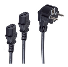 1 x prise à contact de sécurité – 2 x fiche à 3 broches, fiche à contact de sécurité coudée, pour brancher 2 PC avec un seul câble d’alimentation (BS60018)