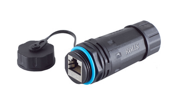 cat. 6, noir/bleu, RJ45 femelle – RJ45 femelle, contacts plaqués or, pour câbles de diamètre 3 – 8 mm, blindage: STP, IP68, matériau du boîtier: nylon PA 66 plage de température: de -40 à 105 degrés,