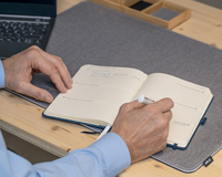 • équipement : reliure cousue, élastique de fermeture, passant pour stylo, pochette, 2 signets, pochette de rangement avec compartiment pour cartes pouvant contenir jusqu’à 10 cartes de visite chacun