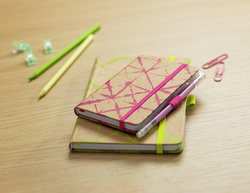 • équipement : reliure cousue, élastique de fermeture, passant pour stylo, pochette de rangement, signet