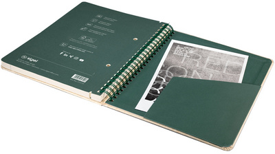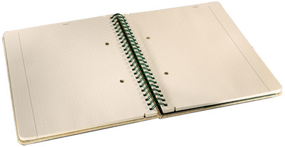 • la spirale intégrale en métal vert foncé permet de déposer le cahier à plat et de tourner la pages à 360°