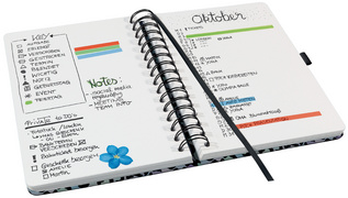 • caractéristiques aux couleurs assorties comme la fermeture par élastique, le passant pour stylo et le ruban de lecture