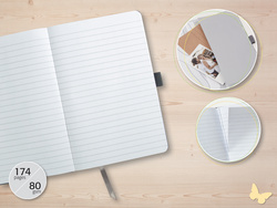 • élastique de fermeture, passant pour stylo, pochette et signet de couleur assortie