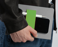 – bande élastique pour accrocher divers accessoires utiles au travail : stylos, smartphone, calculatrice, etc.