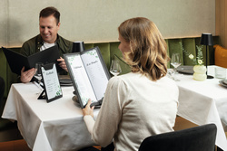 sigel Carte de boissons, 1/2 A4, noir – en polyuréthane (plastique PU), avec attache élastique, pour 8 pages, incl