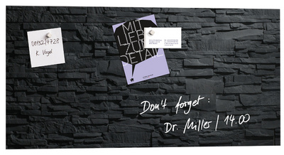 sigel Tableau magnétique en verre “artverum”, – (L)910 x (H)460 mm, magnétique, inscriptible, sans cadre, fixable en format portrait ou paysage, offre 2 fonctions: tableau en verre inscriptible et tableau en liège magnétique tout en un, cube magnétique et matériaux de fixation inclus fixation, couleur: ardoise (GL 149)
