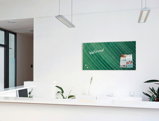 Tableau magnétique en verre Artverum Design Palm Leaf, mat, (L)910 x (H)460 mm Le tableau présente la structure d’une feuille de palmier d’un vert intense & convainc par la haute brillance des couleurs & la netteté des détails !