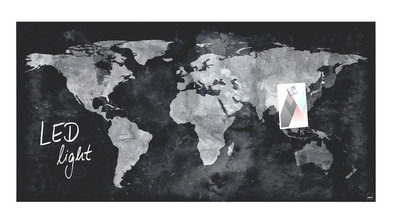 Tableau magnétique en verre “artverum” LED light, carte du monde