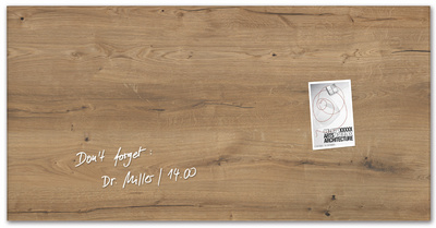 sigel Tableau magnétique en verre “artverum”, magnétique – (L)910 x (H)460 mm, inscriptible, sans cadre, en format portrait ou paysage, avec 2 fonctions: tableau inscriptible en verre et tableau aide-mémoire en un, aimants cube et matériaux de fixation inclus, couleur: Natural Wood (GL258)