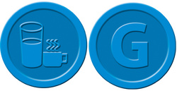 sigel Wertmarken “Getränke”, aus Kunststoff, rot – Getränkemarken aus PP, Durchmesser: 25 mm, Vorderseite: Relief-Motiv, Rückseite: Buchstabe “G” Inhalt: 100 Stück (WM006)