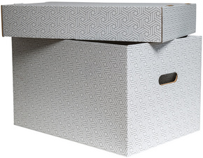 SMARTBOXPRO Boîte de rangement, petit, set de 3, blanc/gris – en carton ondulé robuste, avec couvercle amovible, design géométrique bicolore, dimensions: (L)335 x (T)245 x (H)195 mm en paquet de 3 boîtes (312910008)