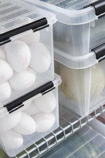 • boîte de rangement transparente avec couvercle et clips de fermeture