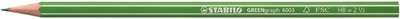 STABILO Crayon graphite GREENgraph, hexagonal, dureté: HB – sans gomme, épaisseur de mine: 2,2 mm, finition veris mat en vert avec des rayures blanches (6003/HB)