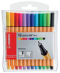 STABILO Feutre à pointe fine point 88 Mini, étui plastique – de 5, largeur du tracé: 0,4 mm, pointe gainée de métal, capuchon ventilé, assorti en différentes couleurs fluo contenu: 5 pièces (68805-1) assorti dans les couleurs: jaune fluo, orange fluo, rouge fluo, rose fluo et vert fluo