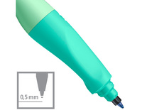 STABILO Stylo roller EASYoriginal, gauchers, nuage de bleu – zone de préhension en matériau antidérapant pour une tenue optimale, largeur de tracé: 0,5 mm, avec champ d’inscription pour le nom, avec capuchon, encre à base d’eau, couleur du tracé: bleu, mine échangeable, 1 cartouche comprise, blister (B-58463-3) Pastel Edition stylo à plume série EASY Start